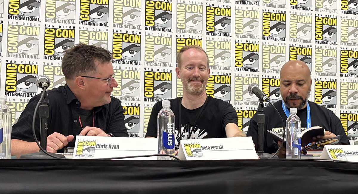 On Thursday afternoon at San Diego Comic-Con, Abrams Comic Cart: The Graphic Storytelling Panel redefinition featured the creators, editors and acclaimed designers behind the publisher’s recent titles, discussing why their work is meaningful, their motivations as artists, and why readers can hope for the line. Moderator Jacq Cohen, Director of Marketing and Promotion at Abrams Comicarts and Host Panelist Mark Evanier, Editor-in-Chief Charlie Cockman, Publishers Joseph Montagne, Chip Kidd, Chip Kidd, Chris Ryall, Nate Powell, and John Jennings.
