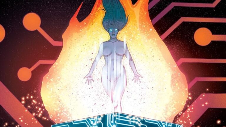 Additionally, Havn and colorist Nick Firaldi use boxed art in an interesting way to enhance the story. Firaldi effectively uses muted colors to portray flashbacks, but especially bright colors to emphasize the artificiality of virtual reality. I especially like the way Havn uses panel construction. In the actual scene, he draws a very traditional straight panel. It is often in widescreen format. However, regarding Pandora’s virtual reality, he turns into a very unusual, sloping but symmetrical panel structure. This also highlights Pandora’s artificial environment, and sometimes almost disorients, as if Pandora wants guests in her realm to have no reliable footing.