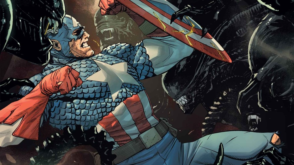 With the retailer panel of closed doors during San Diego Comic-Con in 2025, Marvel announced one of the wildest mashups, Alien vs. Captain America. That’s right, this November, Marvel’s first Avenger goes all the way to the toes with the iconic Xenomorphs of the Alien franchise in the Issue 4 Limited Series written by Frank Thierry.