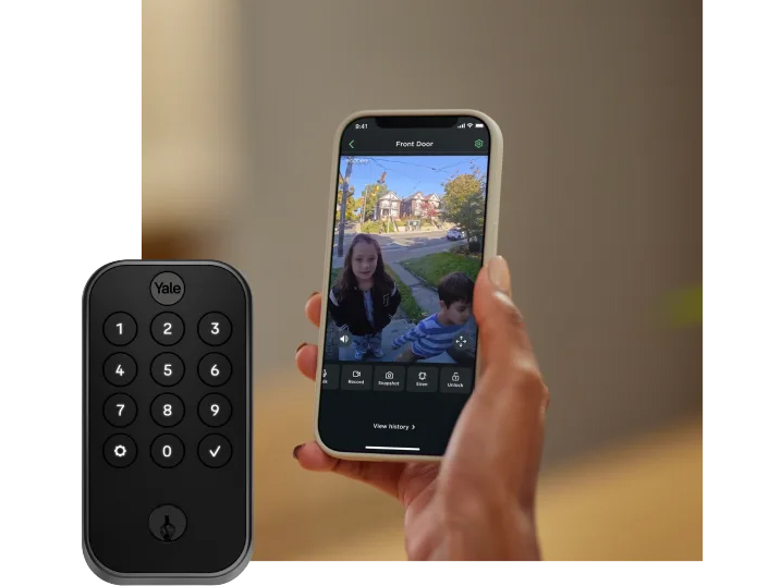 This integration adds an “unlock” button to the live view in the Ecobee app. So you can let visitors in from the same screen you confirm they’re the person you want them to come in. (Handy!) The Ecobee app also allows you to automatically lock your door when you activate your security system. (This is also convenient!)