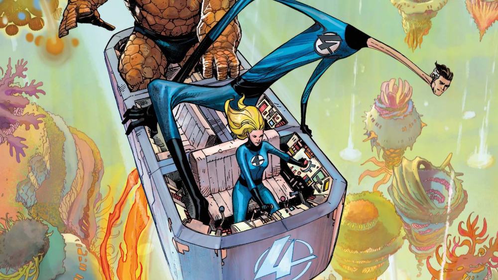Carlos Gomez draws a great issue with some great character acting. As Reed begins his exposition, Gomez and color artist Jesus Aburtov entertain us with scientifically accurate visuals of events that could be related to the planet. It’s a wild concept that gets even wilder when the Fantastic Four go into space. These scenes are also very well drawn, and the structure and abilities of the Invisible Woman are pretty cool to see. And, of course, Reed makes all kinds of weird appearances at times.