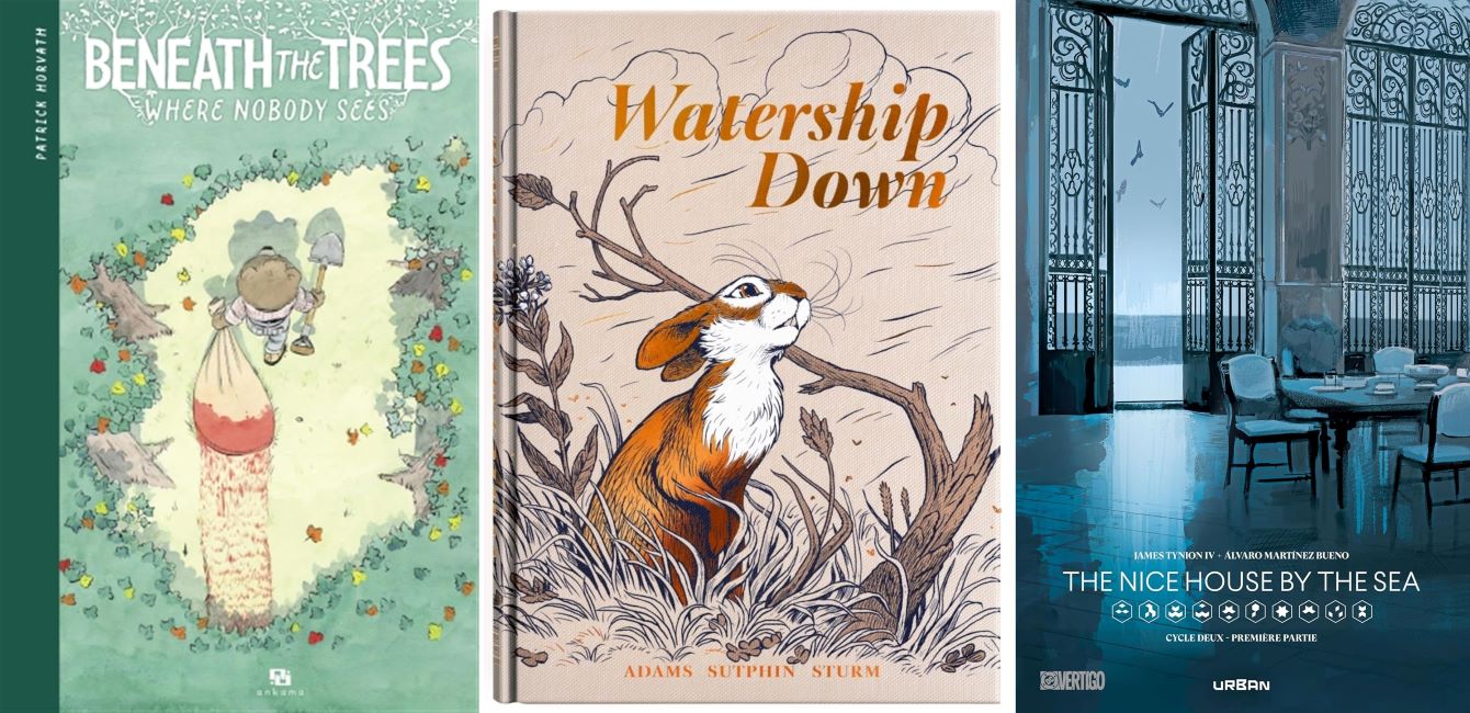 10 Essentials of ACBD under Trees Nobody Seen by Patrick Horvath (Ankama) 10 Essentials of 2025 Summer 2025 (Listed in Alphabetical Order) – Yoann Kavege (Bubble Edition) originally published by IDW Fantasy, the English by DC Black Label de Pierre et d’os (Tr. ‘Stone & Bone’), by Jean-Paul Krassinsky; Bérengère Cournut (Dupuis) Les Poissons, Eux, Ne Pleurent Pas (Tr. ‘Fish Do Not Cry’), Laurent Galandon & Jean-Denis Pendanx (Daniel Maghen) Shin Zero Vol. 1, based on the novels of Mathieu Bablet & Guillaume Singelin (Rue de Sèvres – Label 619), Sibylline, Chroniques D’Une Escort Girl (Tr. ‘Sibylline – Chronicle of Escort Girl’), Sixtine Dano (Glénat) La Terre Verte (Tr. ‘The Green Land’) Trous de Mémoires (Tr. ‘Memory Lapses’), Nicolas Juncker (Le Lombard) Watership Down, James Sturm & Joe Sutphin, Richard Adams (Monsieur Toussaint Louverture) It was first published in English.