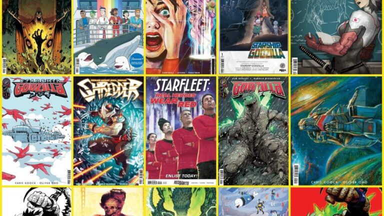 Prior to their release, IDW revealed a number of new covers. Some of them have never been seen in upcoming titles such as Godzilla (on sale July 23rd), Star Trek: Redshirt (on sale July 16th), and Teenage Mutant Ninja Turtles #9 (next week).