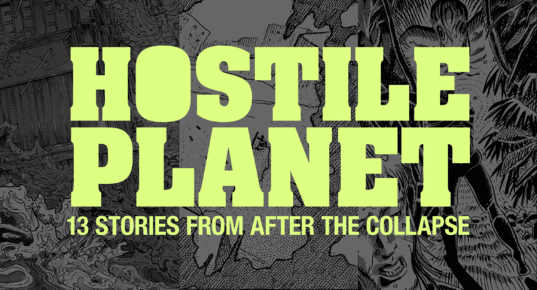 Reimagined, expanded, and finally ready for readers, Hostile Planet brings together 13 creators from around the world to tell stories about what remains after ecological collapse. From post-capitalist wastelands to wind-scarred deserts, each piece offers a glimpse of resilience after destruction. The Beat reached out via email to discuss further.