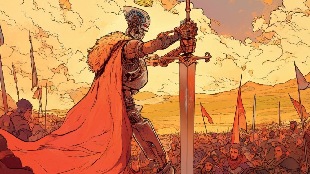Last year, Oni Press killed it off by reviving EC Comics with two new titles: Epitaphs from the Abyss and Cruel Universe. While those were about horror and science fiction, respectively, Oni’s latest EC-focused work, Cruel Kingdom, is a “dark fantasy that evokes tales of magic, myth, and murder from forbidden realms long before our own.” It’s an anthology. And before the articles by Kano, Cullen Bunn, Al Ewing, Charlie Adlard, Chris Condon and others come along, Adam Pollina starts off neatly with this really sharp debut cover. Perhaps the idea of a sword-wielding Terminator-esque robot would be better suited to a cruel world, but the message here is very direct and effective. Take everything you know and feel about a 2025 fantasy story and watch it be torn apart with deadly efficiency. Dear reader, watch as EC/Oni swings the sharpest possible blade on your favorite fantasy stories and tropes, leaving only faint threads of familiarity, mostly ribbons of the past. Please enjoy. This, like the previous two EC titles, is a way to re-evaluate the genre’s storytelling and explore its connections to this type of story. And so far, it’s landed on your face like the heaviest, sturdiest giant sword.