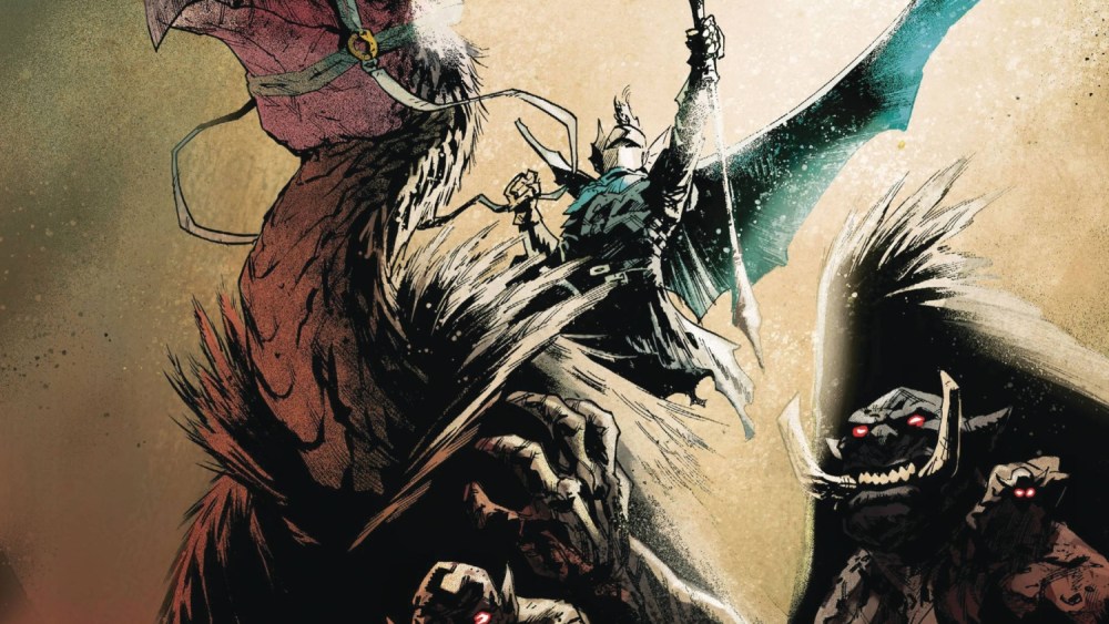 Before he, um, lost the plot, Meat Loaf released Bat Out of Hell, which is an amazing album with perhaps the greatest cover ever (done by the iconic Richard Corben). It’s the sort of powerful, vaguely erotic experience that awoke something in a few generations of folks, and made them view rock ‘n’ roll as this gateway into some deeply human, vaguely naughty realms of thought and emotion. Now, does this Adam Gorham-penned variant cover to The Autumn Kingdom #2 have the same level of power and influence? No, but it does kick at the same kinds of ideas and boundaries. It’s something where, even if you don’t know anything about the story, everything is pretty clear. Good is good, evil is evil, and you either want to watch this battle unfold while listening to Dio or, for the extra brave among us, somehow transport yourself into this conflict and unleash hell to your many fiendish foes. It’s a cover that scratches the same big fantasy itch, and it does so with epic line work, mighty coloring and shading, and the courage and strength to just go super bold with everything. Maybe this could be the Bat for a whole new, slightly nerdier generation of fans, folks who will see this and use that awesome strength to really celebrate life. Either way, I want to ride that chicken-dino pronto.