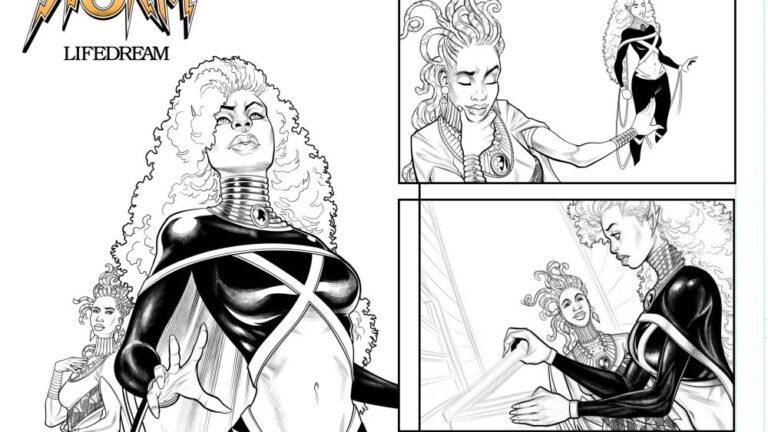 Storm: Lifedream begins as an intergalactic historian attempts to update the record on Earth’s most powerful mutant, Ororo Munro. As they unravel Storm’s rich history, they will discover an irrepressible and powerful woman. And she risks unleashing a side of her that no one has ever seen before. This is a whirlwind journey through Storm’s momentous adventures and great deeds as a malevolent presence threatens to tarnish her legacy!