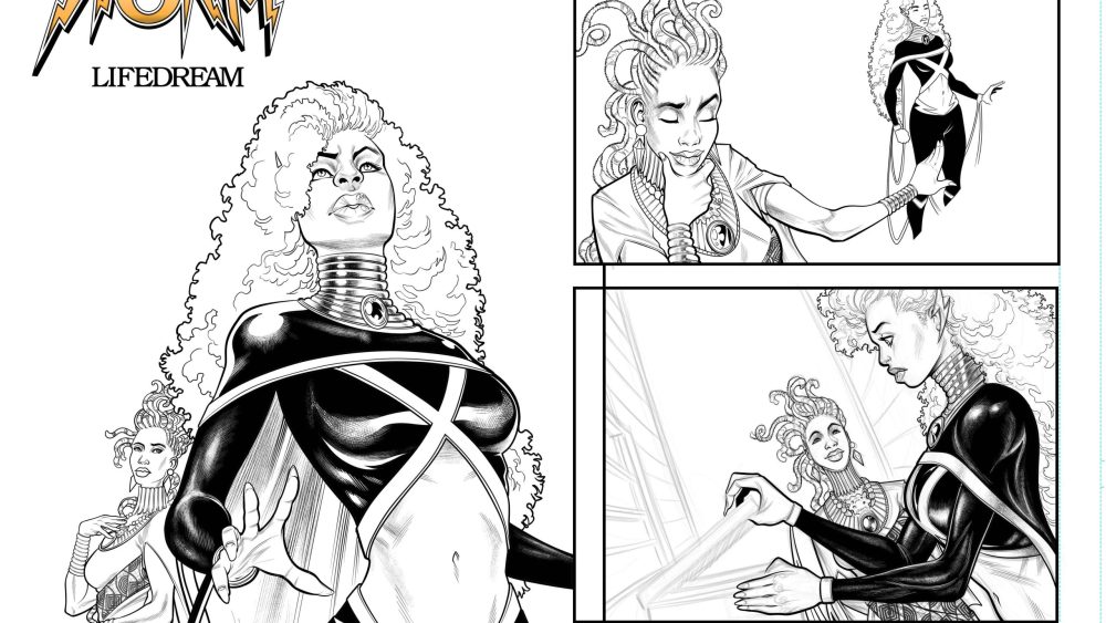 Marvel Comics has released new interior art and design for Storm: Lifedream. Just in time for X-Man’s 50th anniversary, Storm: Lifedream celebrates the character’s influence with a thrilling story that revisits her most iconic era. Today, fans have seen all four covers so far, including breathtaking new works by Karen S. Darboe, Olivier Coipel, and her current solo series artist Lukas Werneck You can check it out along with the unique interior artwork.