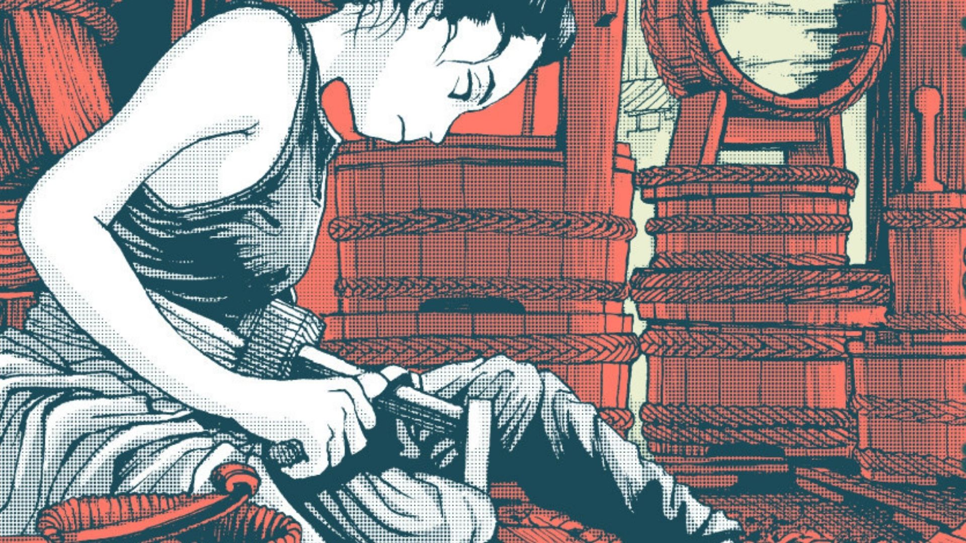 For Akihito Sakaue, the plot is less of a concern than a visual narrative. In the first chapter, “Cooper,” the artisan first chooses a wooden plank, then corrects the buckets brought by the customer, and finishes the day with a glass of sake. In Chapter 4, “The Tatami Weaver,” a group of artisans visit one of Yoshiwara’s delight lodgings, visit the Red Light district, and repair Tamoto while the prostitutes watch them function. There is no plot beat that continues in the traditional sense, except for the plasterer, the longest story. What happens in these chapters with events and plot progress is insignificant.