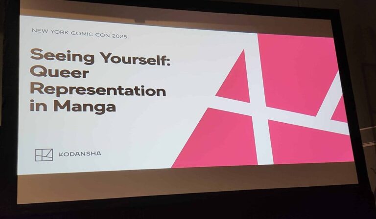 On Saturday, October 11th, Kodansha’s “Seeing Yourself: Queer Representation in Manga” panel began at 4:15 and was moderated by Ivan Salazar of Kodansha Sales and Marketing. The panel discussion included TJ Ferentini (senior editor at Kodansha), Gigi Murakami (creator of the VIZ original one-shot Resenter), and Morgan Perry (marketing manager at Square Enix).