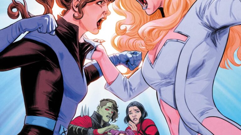 From enemies to uneasy allies to friends, Kitty and Emma have one of the most complex relationships in the X-Men mythology. Now, just when the mutant race needs them most, their hostility resurfaces. In a new preview, see the first stages of their new partnership as they teach Axo, Bronze and Melee how to control their talents at the New Mutant Dojo, after a heated argument between the two escalates into violence and cooler heads prevail . This fledgling X-Men team will soon find themselves in their first real battle, so they better learn fast!
