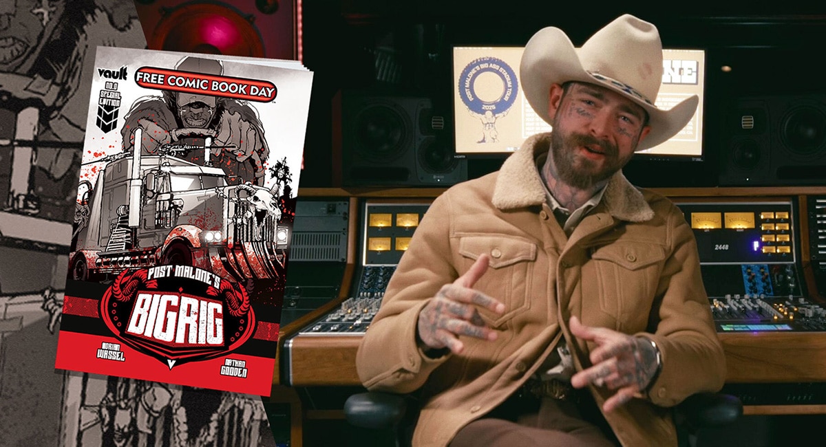 Vault Comics and Post Malone previously announced a collaboration with a brand new comic, Big Rig. Now the singer/rapper is featured in brand new videos promoting comics and upcoming free comic book day releases.