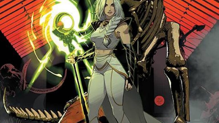 Fabi Marques makes Yg’s artwork pop with flares of color that change depending on the scene and the characters involved. Speaking of Rita, the striking contrast between her pure white gown, hair, and sparkling red eyes catches the eye. For VR troopers, light shines from their metal armor. The armor has the same red/black/silver color scheme, despite having a vastly different design. Marquez colors the background behind Lauren and her friends to hint at who and what the rangers will give in the future.