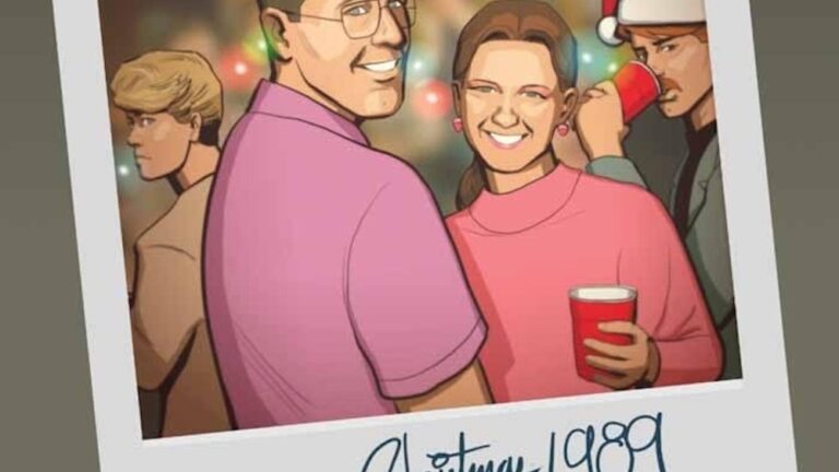 Public Domain #10 jumps through multiple years starting in 1988. At the beginning, Sid and his wife Candy are at a Christmas party, and things are already getting awkward. Sid’s pressure from Jerry, a big-name writer, and his job are already taking a toll on his marriage. We already know who Candy cheated on with, so we navigate the party and every moment wondering how things will turn out. Zdarsky brings it out in a good way, revealing relationships built over many years.
