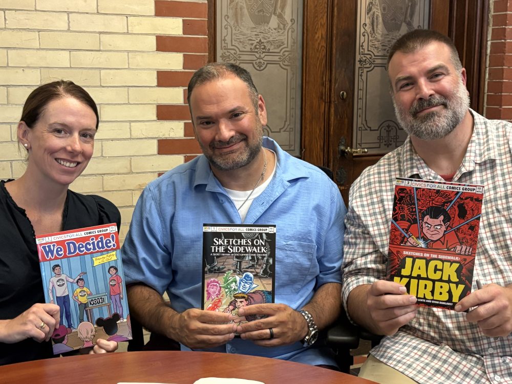 Joe Schmidt: So there are kind of two answers to this, and then I’ll hand it off to Jenna to talk about the civics side of things. In some ways, I think it is about accessing youth culture. So students read comic books. They’re drawn to comic books. That doesn’t mean it’s unique to New York City; it’s unique to youth. So it is an opportunity for us to really think about things that are relevant to young people. But actually, to take it a step further, when you go to New York City and you think “what is the power of sequential visual narrative,” students are bombarded with images. Even if you just think about your trip here.