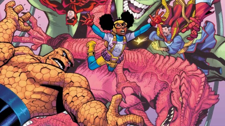 “Brandon and Natasha gave us and Lunella one of the best birthday stories in Marvel history!” editor Mark Paniccia promised. “And we can’t wait for readers to discover Lunella’s descendant, Devil Girl, and her laser-eyed flying blue dinosaur! You won’t want to miss this special!!”