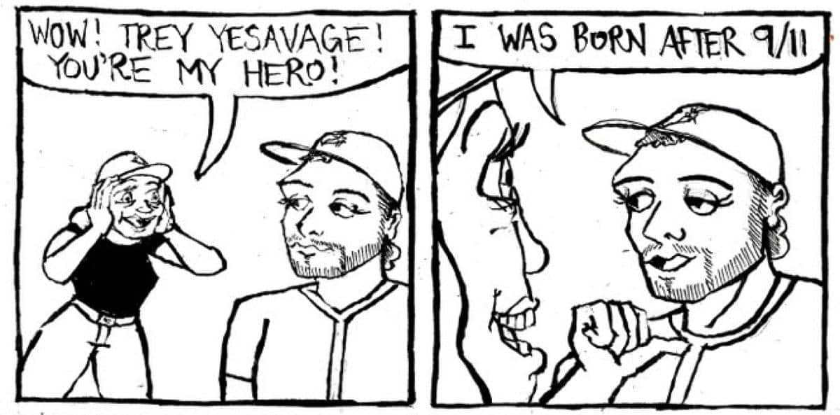 McFadden: A lot of cartoonists in general, but especially cartoonists making swipe comics blur the line between memoir and fiction. It’s a predecessor to the swipe comic, but Allison Bechdel’s Dykes Watch Out For is an example of that. Your work feels very lived and true to life in many ways, despite its absurdity, are you thinking about that fact/fiction boundary when you’re working?