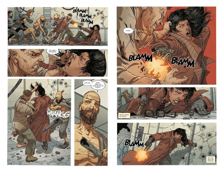 The second Omnibus collects 12 issues from Blade Runner 2029. This is the whole of the story arc’s “reunion”, “echo”, and “red” whole. Written again by Green and Johnson, Guinaldo returns in Art’s Duty, continuing the story of Ash 10 years after the events of the previous series.