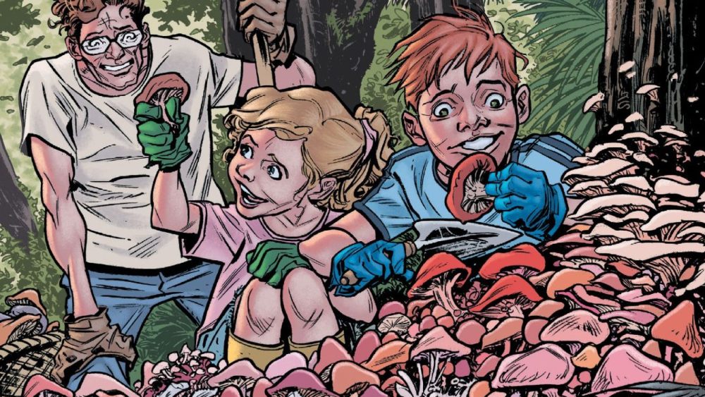 My favorites of the new stories here are “Garden Variety” by Matt Kindt, David Lapham and Nick Filardi. Like many classic EC comic stories, this is primarily told from the serial killer’s first-person POV, but only this guy gets a kick using humans as fertilizer for his gourmet mushrooms. The focus characters are dark and funny as well as slow twists that ruin some appetite. Again, there are some really scary gores at the end of the story, but it can make the punchline of the story even more difficult. Of all the new stories here, this feels like the clearest spiritual successor to the classic EC book, but that’s a bit lighter too.