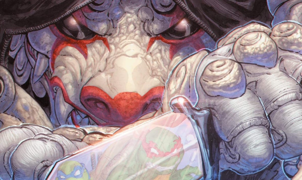 Last week saw the release of Teenage Mutant Ninja Turtles #13, the first issue from the new creative team of writers Gene Luen Yang and Freddie E. Williams II. It’s safe to say that IDW Publishing was promoting this book. There’s a good reason for that. After teasing the arrival of an all-new enemy named Ujigami, the final page of TMNT #13 reveals the most shocking development regarding Ujigami’s true identity.