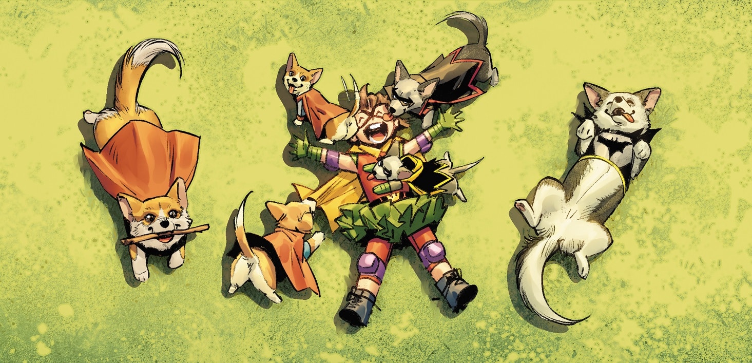 Returning to popular demand, she is now her own miniseries…Trinity! It all begins when Wonder Woman’s daughter embarks on her most dangerous adventure and joins her timeline to find her father. As young heroes know, there are consequences for messing around with time, but that doesn’t mean she’s first learned her lesson. Things were about to get Rough and Super Sands went to the dog. Be prepared for the endless corgi crisis!